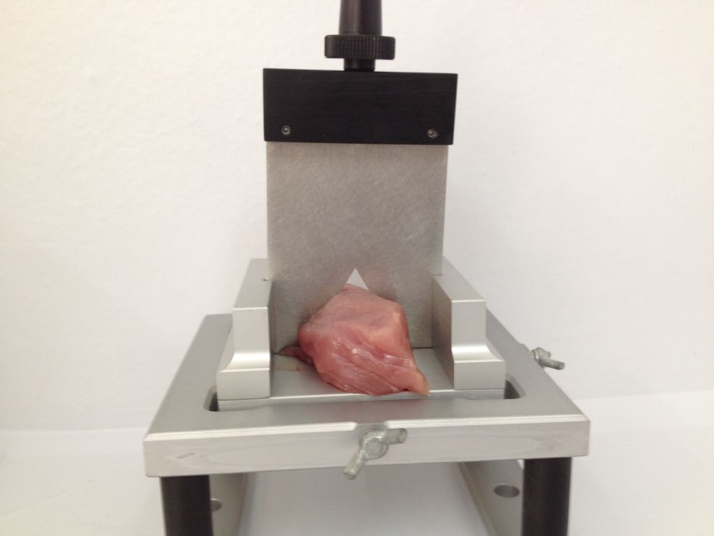 將魚(yu)糜凝膠(jiao)切成高(gao)20mm 的小圓柱(zhu)體,斷面的中心(xin)置于質構(gou)儀探頭(tou)的正(zheng)下方樣品臺上(shang)。選用測試探頭(tou)P/BS;最大力為剪(jian)切力;所得最(zui)大值(zhi)(峰值)與起始(shi)點連線的斜(xie)率用于(yu)表征(zheng)其脆性(xing),其值越大代表(biao)魚糜凝膠脆(cui)性越大。測試條(tiao)件設置: