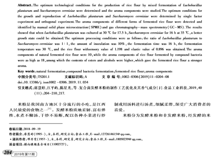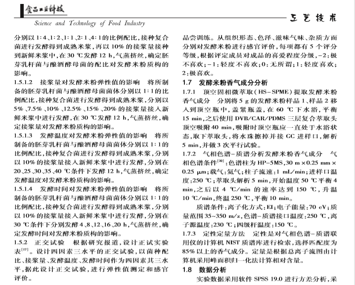 ? ? ? ?近期,南昌大學(xue)食品科學與技(ji)術國家重(zhong)點實驗室在(zai)《食品工業(yè)科技(ji)》期刊2019年第11期發(fā)(fa)表題為“復合菌(jun)發(fā)酵米粉的(de)制作(zuo)工藝優(yōu)化(hua)及其香氣成(cheng)分”的文章,文章(zhang)中使(shi)用Universal TA質(zhì)構(gòu)儀來(lai)測定(ding)米粉的彈性(xing)。