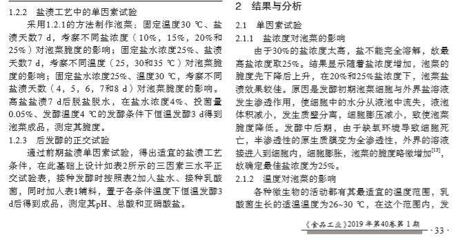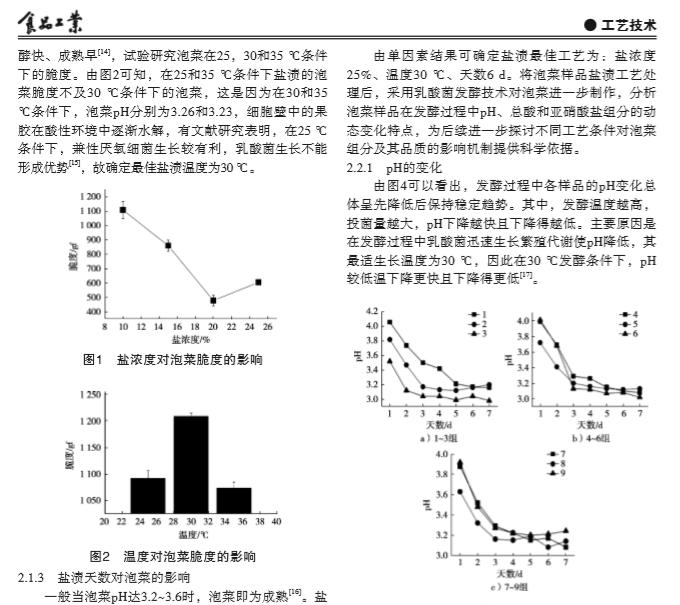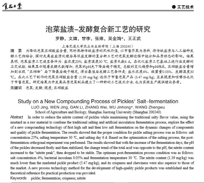 Technical articles? ? 2019年,國內(nèi)期刊《食(shi)品工業(yè)》在線發(fā)(fa)表了上(shang)海交通大(da)學農(nóng)業(yè)與生(sheng)物學院研究人(ren)員題為"泡菜鹽(yan)漬-發(fā)酵(jiao)復合新(xin)工藝的(de)研究?"的研(yan)究論文(wen)。在該論文(wen)中,研究人員用(yong)上海騰拔儀(yi)器公司(si)的Universal TA質(zhì)構(gòu)(gou)儀測定泡菜的(de)脆度和(he)咀嚼性。