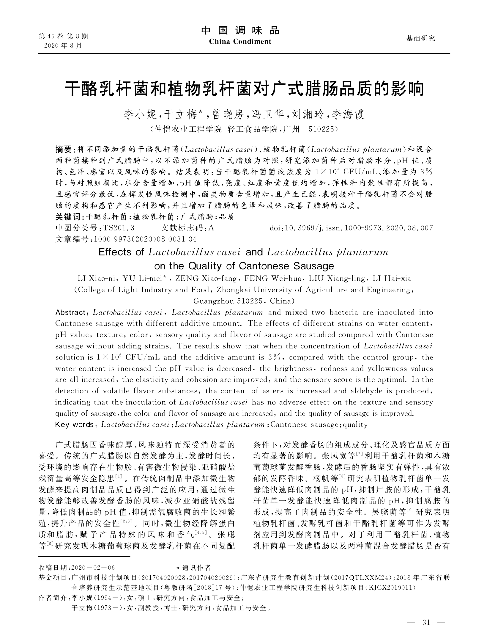 質(zhì)構(gòu)儀相關(guān)(guan)論文:干酪乳(ru)桿菌和植(zhi)物乳(ru)桿菌對廣式(shi)臘腸(chang)品質(zhì)的影(ying)響