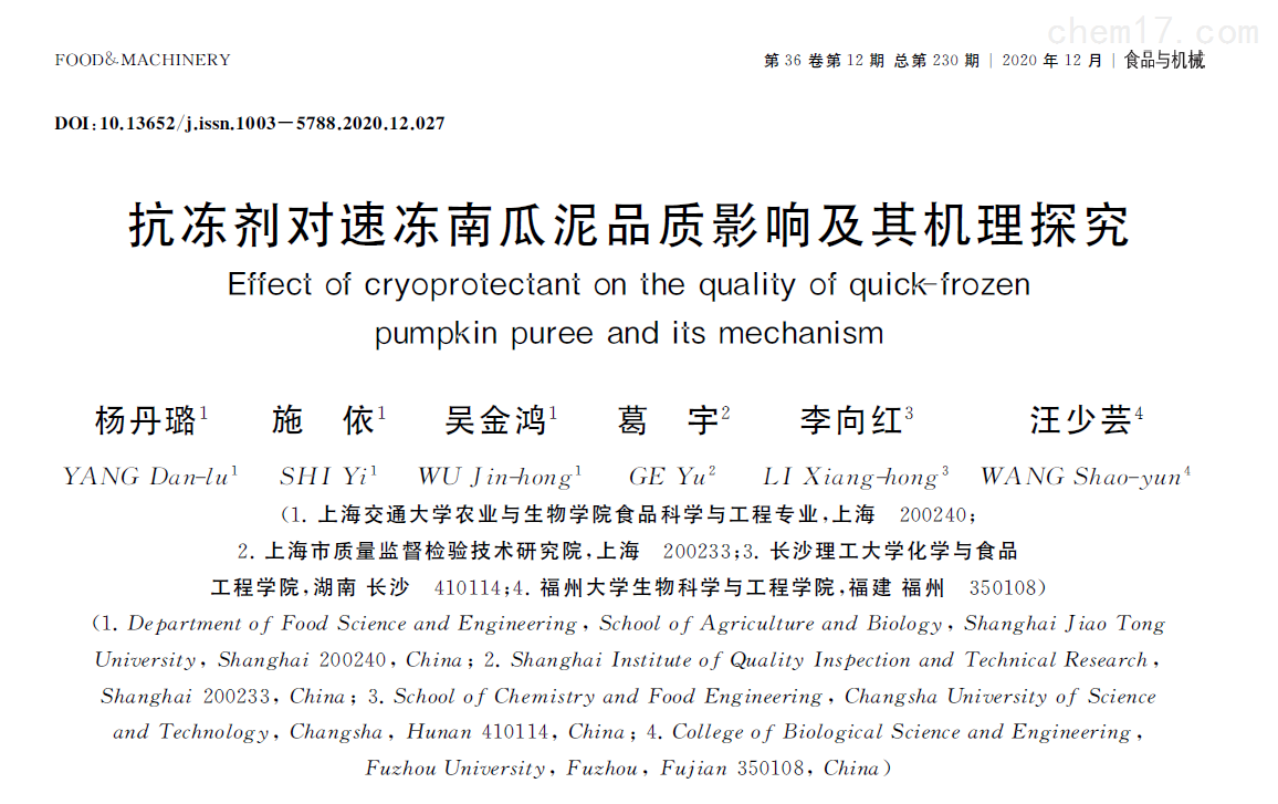 全文下(xia)載鏈(lian)接:抗(kang)凍劑(ji)對(duì)速凍南瓜泥(ni)品質(zhì)影響及(ji)其機(jī)理探(tan)究