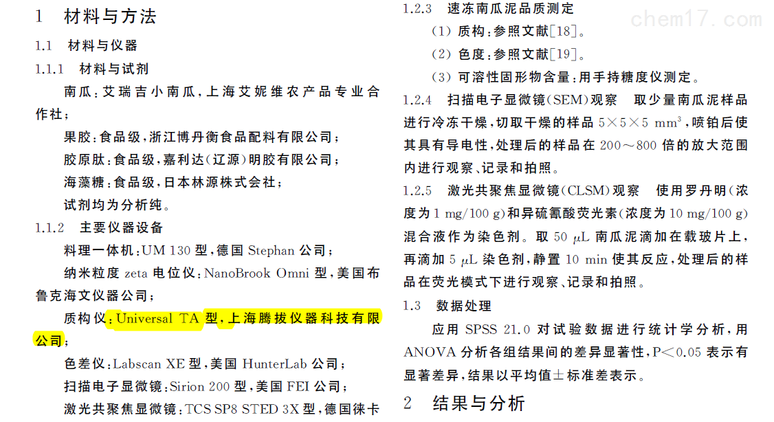 Technical articles2020年,上(shang)海交通(tong)大學(xué)農(nóng)業(yè)與(yu)生物(wu)學(xué)院研究人(ren)員等(deng)在國內(nèi)(nei)期刊《食品與(yu)機(jī)械》發(fā)表(biao)了題為“抗(kang)凍劑對(duì)速凍南(nan)瓜泥品質(zhì)(zhi)影響及其機(jī)(ji)理探究"的研究(jiu)論文。在該論(lun)文中,研(yan)究人員利用(yong)上海騰拔儀(yi)器科技有(you)限公司的Universal TA質(zhì)(zhi)構(gòu)儀來測定(ding)速凍南瓜(gua)泥的硬度(du)和內(nèi)聚性(xing)。