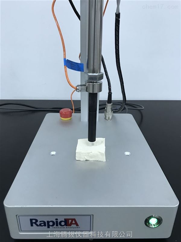 取上(shang)述制(zhi)成的(de)待測(cè)凝膠(jiao),置測(cè)試臺(tái)(tai)上,一般在不超(chao)過(guò)25℃的環(huán)境下(xia),立即以0.5~1.0mm/s的速度(du)下行,使(shi)探頭下行壓至(zhi)凝膠(jiao)表面(mian)下凹4mm或各品種(zhong)項(xiàng)下規(guī)定的距(ju)離時(shí),讀取所(suo)產(chǎn)生的重量(liang)(g或bloom g);或?qū)⑺?de)的重量(liang)除以(yi)所選探(tan)頭的面積(cm2),即(ji)得(g/cm2)。