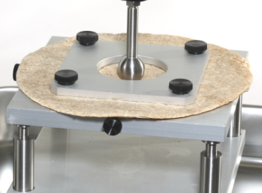將海藻面膜放(fang)置于(yu)薄膜撕裂裝(zhuang)置中央,用球形(xing)探頭對海藻(zao)面膜進行擠撐(cheng),直到海藻面(mian)膜被撐破(po),可以測定海藻(zao)面膜(mo)的撐破強度(du)、彈性和(he)韌性等(deng)指標。