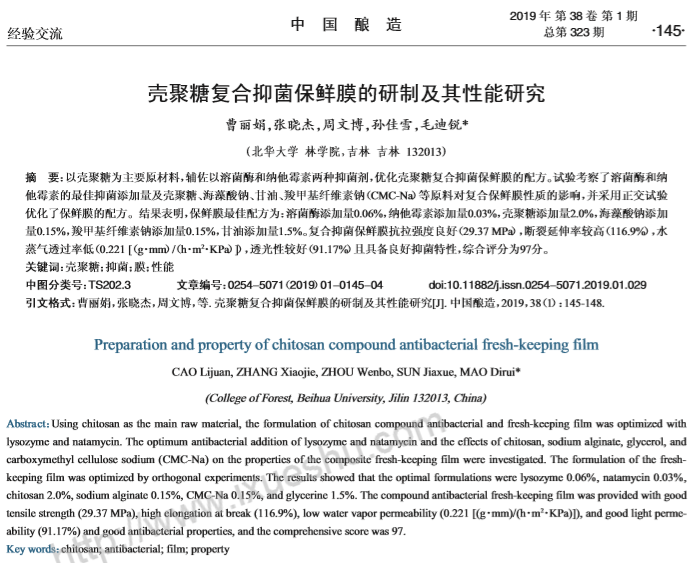 上海騰拔(ba)質(zhì)構(gòu)儀相關(guān)(guan)論文(3):殼聚(ju)糖復(fù)合抑(yi)菌保(bao)鮮膜的研(yan)制及其性能研(yan)究