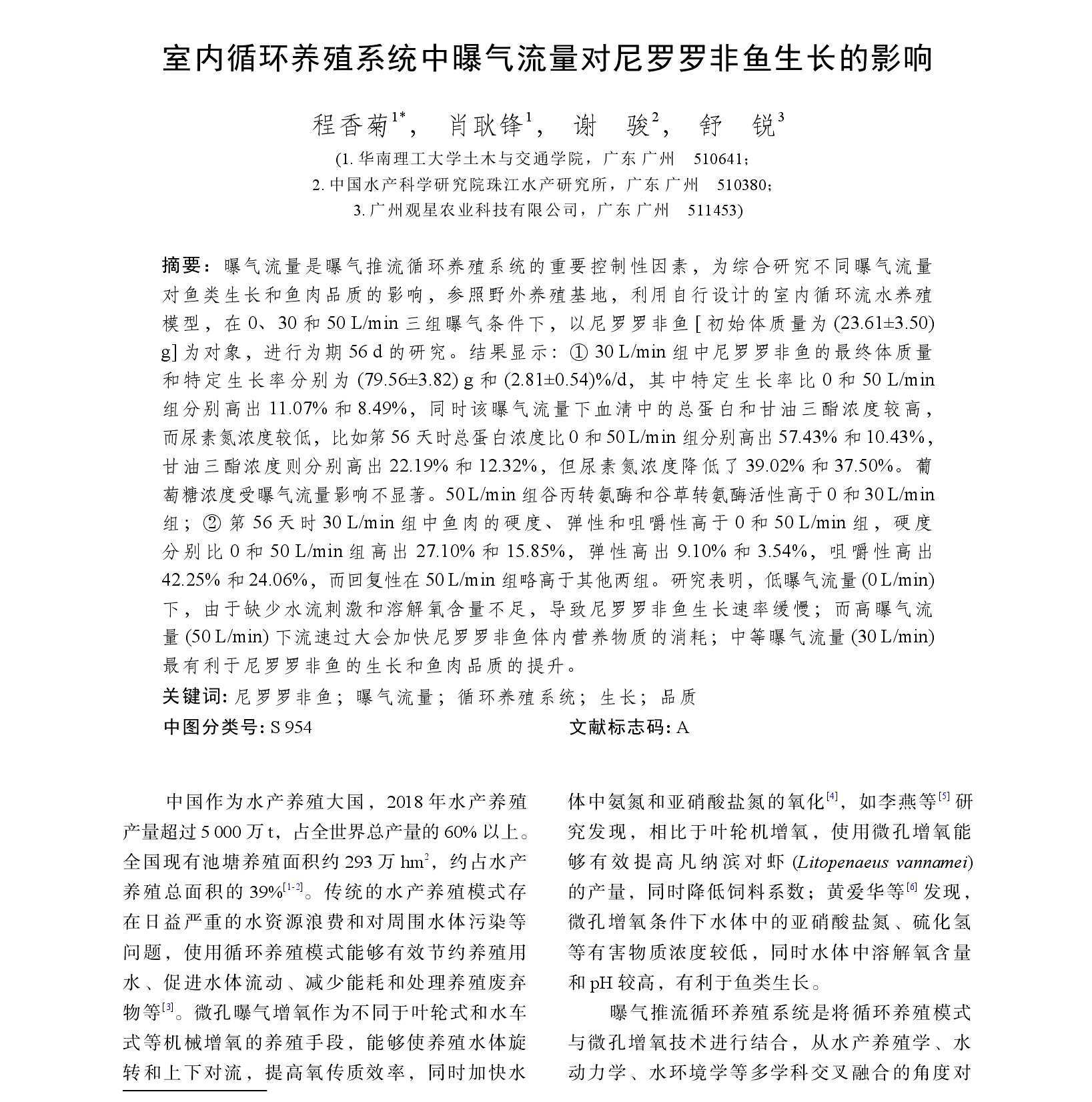 ?全文(wen)下載鏈接(jie):室內(nèi)循環(huán)養(yǎng)殖(zhi)系統(tǒng)中曝氣(qi)流量(liang)對尼羅羅非魚(yu)生長的影響
