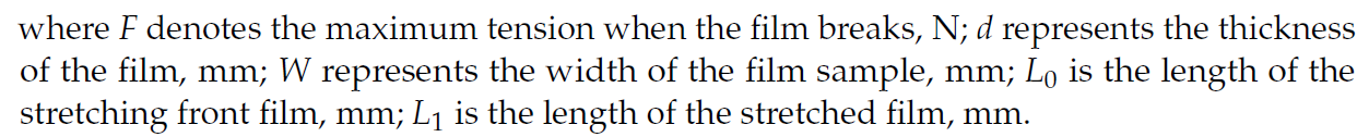 2、復(fù)合可食用膜(mo)的拉伸強(qiáng)度和(he)斷裂伸長(zhǎng)率(lv)的測(cè)定