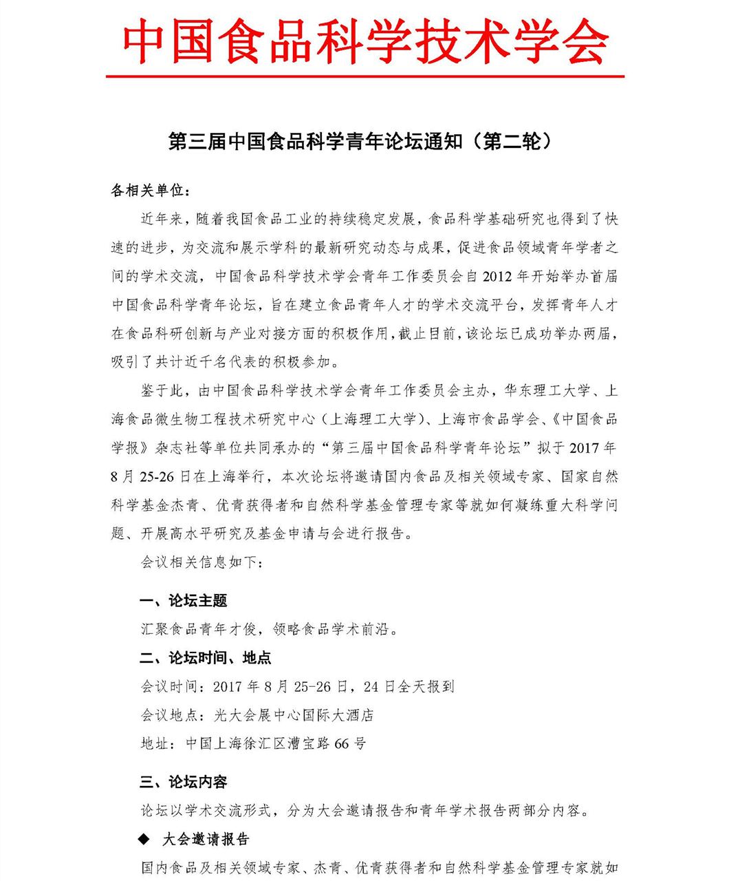 當前位置:首頁新聞中(zhong)心關于(yu)召開(kai)第三屆中(zhong)國食品(pin)科學青年論壇(tan)通知(zhi)