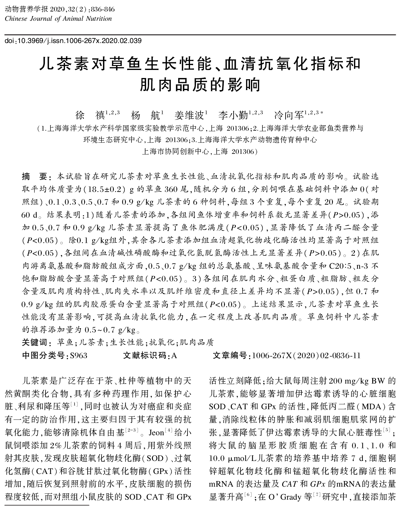 質(zhì)構(gòu)儀相關(guān)(guan)論文:兒茶(cha)素對(duì)草魚(yú)(yu)生長(zhǎng)性能、血清(qing)抗氧化指(zhi)標(biāo)和肌肉品質(zhì)(zhi)的影(ying)響