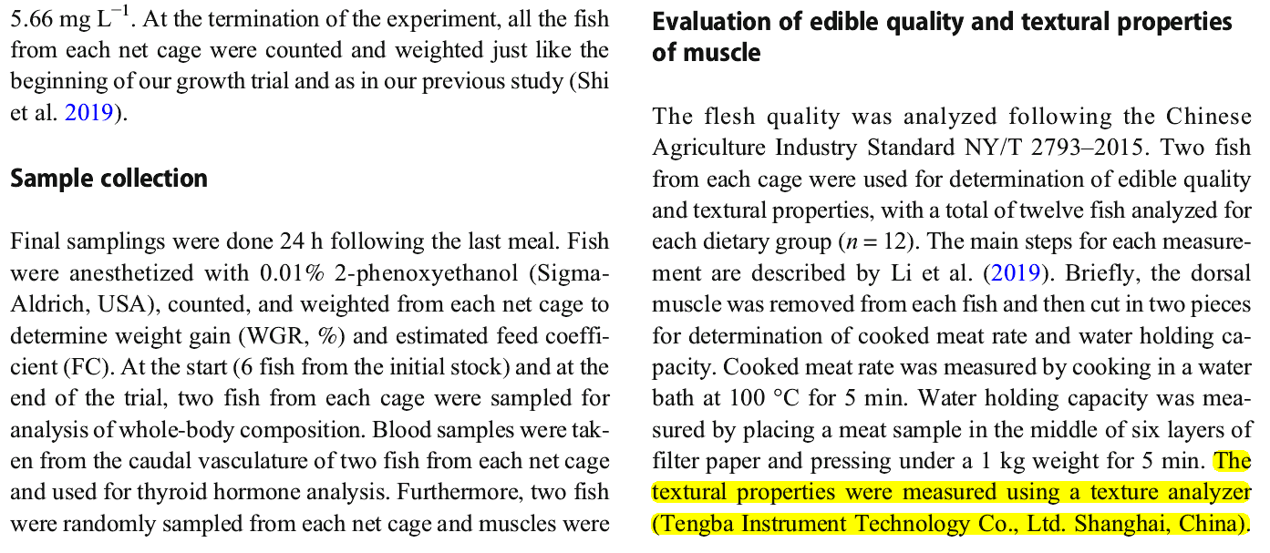 ? ? 在該研究(jiu)論文中,研究(jiu)人員(yuan)利用上(shang)海騰拔質(zhì)構(gòu)儀(yi)用于測(cè)定黑鯛幼(you)魚肌肉的硬度、彈(dan)性、回(hui)復(fù)性、內(nèi)聚性(xing)和剪切力等指(zhi)標(biāo)。