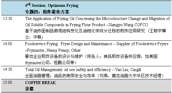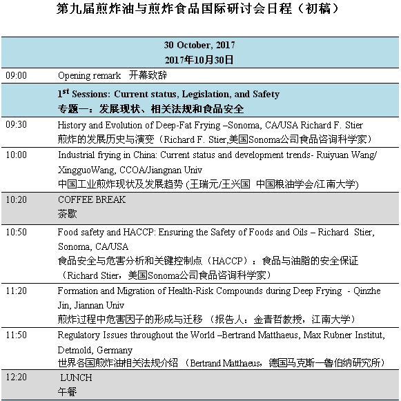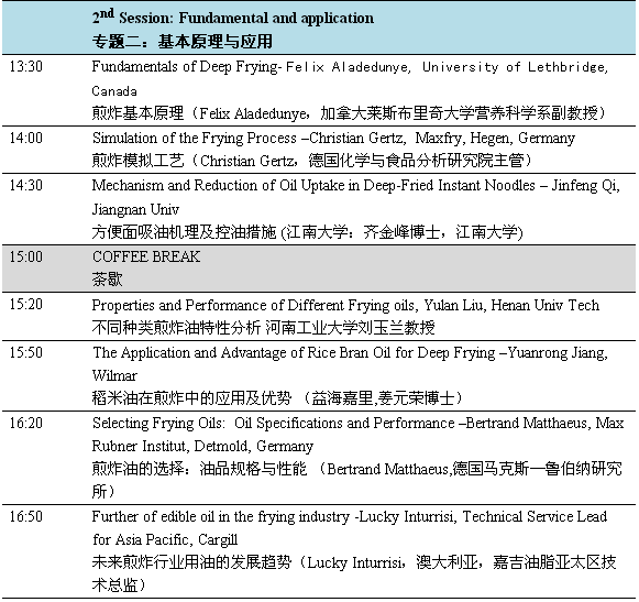 ? ? “煎炸油及煎(jian)炸食品研討會(hui)”是歐洲油(you)脂科技聯(lián)(lian)盟發(fā)起(qi)的品牌會(hui)議,每兩(liang)年舉辦一屆。前(qian)八屆會議在(zai)歐洲及北(bei)美洲舉(ju)辦,這是來到(dao)中國。