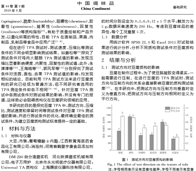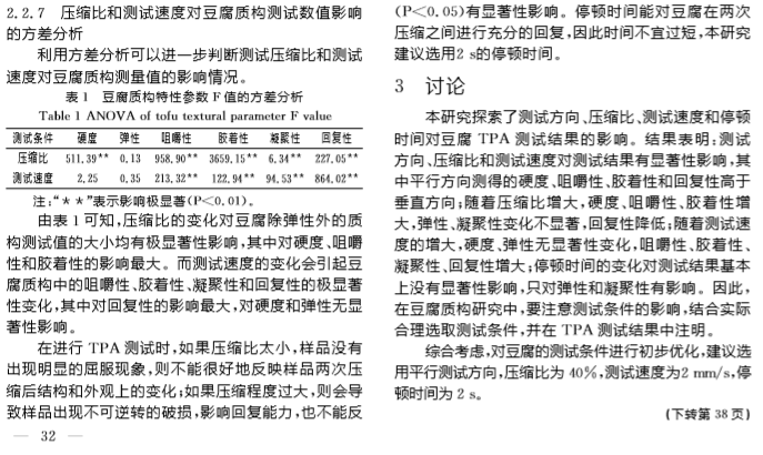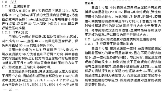 上海騰拔質(zhì)(zhi)構(gòu)儀相關(guān)論文(wen)(1):TPA測(cè)試條(tiao)件對(duì)豆(dou)腐質(zhì)構(gòu)(gou)測(cè)試(shi)結(jié)果的影響