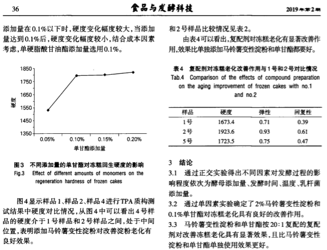 ? ? 2019年,《食品與(yu)發(fā)酵科技》期刊(kan)在線發(fā)表了(le)四川省食(shi)品發(fā)(fa)酵工業(yè)研究(jiu)設(shè)計(jì)院題為“傳統(tǒng)凍糕(gao)工業(yè)化生產(chǎn)(chan)技術(shù)研(yan)究”的文章,在文章(zhang)中,研究人(ren)員使用上海騰(teng)拔Universal TA質(zhì)構(gòu)儀測(ce)定傳統(tǒng)(tong)凍糕的硬度、彈(dan)性、回復(fù)(fu)性等指標(biāo)(biao)。