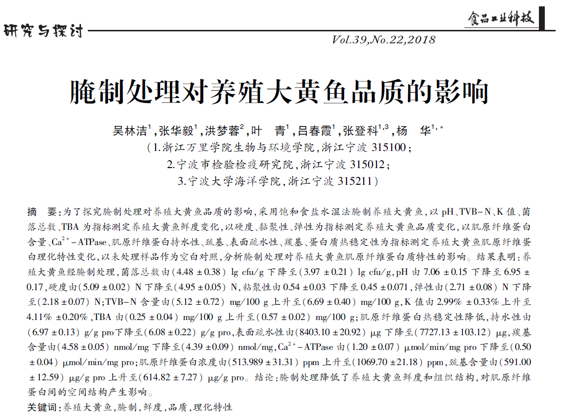 腌制處(chu)理對養(yǎng)殖大(da)黃魚品質(zhì)(zhi)的影響