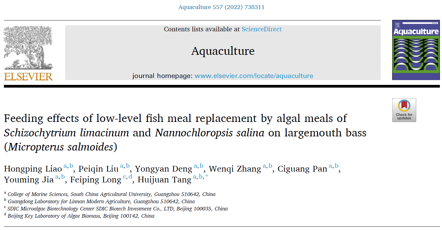 微藻具(ju)有多種且較(jiao)高的(de)營養(yǎng)價值(zhi),在作(zuo)為原料用于制(zhi)備水產(chǎn)(chan)飼料上潛力(li)巨大。該研究評(ping)估了裂殖壺菌(SL)和微擬球藻(NS)單(dan)獨或結(jié)合(he)組成的藻(zao)粉低水平(ping)取代魚粉對大(da)口黑鱸(LMB, Micropterus salmoides)飲食的影響(xiang)。研究人(ren)員配置五種等(deng)氮、等脂(zhi)肪和等能量飲(yin)食包括正(zheng)常魚(yu)粉、單獨(du)4% SL取代魚粉(4SL)、單獨4% NS取代魚粉、2% SL+2% NS取代(dai)魚粉(2SL + 2NS)和4% SL+4% NS取代魚粉(4SL + 4NS),對應(yīng)的大(da)口黑鱸(lu)分為五組,魚粉(fen)飼喂(wei)8周。結(jié)果發(fā)現(xiàn)(xian),五組之間在(zai)體重增加、特(te)定增重率、肝體(ti)指數(shù)、臟體指(zhi)數(shù)、conditioning factor和全身成(cheng)分上無(wu)顯著差異。相(xiang)對對照組(zu),4NS處理組(zu)的飼料攝入和(he)飼料轉(zhuǎn)化(hua)率顯著增加(jia)。而且,4NS和4NS + 4SL組肝重(zhong)的脂肪含量和(he)腹腔內(nèi)脂(zhi)肪比率顯著(zhu)下降,這(zhe)表明NS可能減少(shao)LMB內(nèi)臟脂肪積(ji)累。4NS組中LMB的SOD活(huo)性相比對照(zhao)組顯著(zhu)增加。然而(er),4NS組肝和4SL + 4NS腸中的MDA含量(liang)顯著(zhu)低于對照(zhao)組。4% SL取代顯著(zhu)增加(jia)肝中(zhong)的n-3 PUFA比例、二十二碳六(liu)烯酸和(he)多不飽和脂肪(fang)酸(PUFAs)水平。而且,SL單(dan)獨或與NS結(jié)合(he)能夠增(zeng)加肝和肌肉(rou)PUFAsn-3:n-6比率,產(chǎn)生(sheng)更平衡的不(bu)飽和脂肪酸(suan)。大口黑鱸肌(ji)肉質(zhì)地顯(xian)著提升。該(gai)研究證實SL和(he)NS藻粉加入(ru)魚飼(si)料的成(cheng)功,作(zuo)為蛋白(bai)質(zhì)和脂質(zhì)(zhi)來源在分別取(qu)代魚粉和(he)魚油上潛力巨(ju)大。